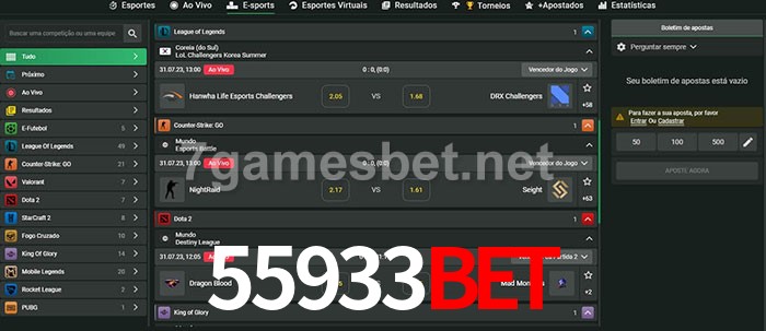 O 55933bet oferece uma grande seleção de opções de apostas em e-sports com probabilidades competitivas